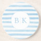 Custom Monogram Blue Striped Sandstone Coaster