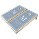 Natural Wood Cornhole Set, Navy Blue and Hunter Green bags