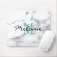 Custom monogram chic white marble stone mouse pad. Classy script typography and elegant background texture. Luxury mousepad design for men women and kids. Monogrammed with your name initial letter. Cute Birthday gift idea for mom, mother, girfriend, husband, wife, daughter, friend, co worker, boss, employee etc. Custom computer accessories with stylish print for him or her. Turquoise blue and black lettering.