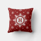 Custom monogram Christmas pillow. Personalized red pillow with white snowflakes. Large snowflake in center of cushion where you can add your initial. Unique Christmas home decor accessory pillow - personalized with your monogram.
