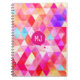 Custom Monogram Colorful Pink Red Triangle Pattern Notebook