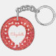 Custom Monogram Coral Glitter White Heart Dots Keychain