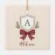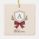 Custom Monogram Crest Bow Christmas Ceramic Ornament