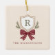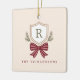 Custom Monogram Crest Bow Christmas Ceramic Ornament