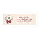 Add a touch of preppy and personalized charm to your holiday mailings with this stylish monogram return address label. The design features a simple, hand-drawn crest with festive evergreen sprigs and a rustic striped bow, making it perfect for the Christmas season. Easily customize it with your family's initial and return address. © Kimbellished, LLC