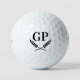 Custom monogram crest logo Titleist Pro V1 Golf Balls. Initialed golf balls with elegant laurel wreath design. Custom monogrammed golfing balls for golf players. Professional brand golf balls with your name. Personalized golf ball gift set for him or her. Classy corporate business gift idea for clients, partners, customers etc. Unique golfer presents for sporty men and women. Make your own luxury balls for golfing dad, husband, father, uncle, brother, boss, coworker, buddy, caddie, mom, wife, sister, team, coach, instructor etc. Unique Birthday and Christmas presents for him or her. Also available on other brands like Callaway, Wilson, Bridgestone and Taylor Made.