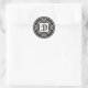 Decorative Initial Monogram Stickers with a white swirls pattern on a black background framing your elegant monogram .