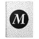 Minimal doodle spot pattern in sketch style. It's simple black an white pattern that would look great , as a cool but fun ,modern patterned notebook, the personalized initial makes it even more unique for you.
