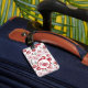 Add a touch of elegance to your travels with this personalized luggage tag featuring a whimsical cherry and cherry blossom design. One side showcases a monogram in a stylish circular frame, while the other side includes your customizable contact information in bold red accents. Made for frequent travelers, this luggage tag combines beauty and practicality, ensuring your bags are easy to spot while remaining uniquely yours. Perfect for suitcases, carry-ons, or backpacks!