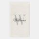 Custom name monogram elegant ecru paper guest towels. Elegant script typography design napkins with narrow fold. Personalized disposable party supplies for dinner party, reception, wedding, Birthday, event, gathering, family reunion etc. Stylish print with custom background color. Fancy table decor for drying hands, powder room and more. Add initial of newlywed couple.