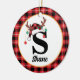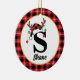 Celebrate Christmas with this personalized family ornament featuring a plaid Santa hat, antlers, and festive ornaments! The bold monogram initial and customizable name make it perfect for holiday gatherings and family photos.