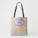 Custom Monogram Feminine Colorful striped pattern Tote Bag
