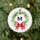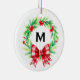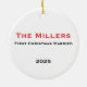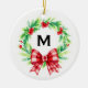 Personalized Christmas ornament for newly married couple. First Christmas Married. Rustic watercolor wreath design on front. Name/year on back.