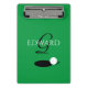 Custom monogram golf score card holder Mini Clipboard. Personalized golfing gift for golfer, dad, coach, trainer, instructor, friend, mom, boss, coworker etc. Elegant design with ball and putting hole. Green or custom color.
