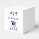 Personalize the graduation year and three-letter monogram on these Class of 2024 party favor boxes. Add sweet treats or other goodies to the box for a fun way to honor your graduate's special day. Blue text, white background, and blue graduation cap with gold tassel.