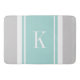 Custom Monogram Grey Mint Green Stripes Pattern Bath Mat