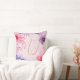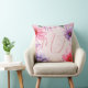 This elegant and stylish throw pillow features a feminine, tropical floral design in shades of pink and purple. The background is a soft pink shade with a sample monogram in the center printed in a matching, darker shade. You can personalize the pillow to include your own custom initials or text. Pink and purple tropical flowers frame the pillow.