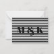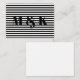 Custom monogram initials black white stripes note card
