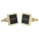 Ensure a handsome finish to your look with this modern yet elegant golden monogram initials or name on a black background pair of cufflinks.