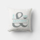 Personalized Custom Monogram keepsake wedding or anniversary pillow in grey and teal or mint green text or typography on a white background on the front and Teal Mint Green background on the back for square throw pillows and cushions. Customize with the bride and groom family name and wedding date. This stylish and chic, modern, trendy, contemporary design will enhance any home decor, living room, sofa, lounge, bedroom, office, or boat. This pillow or cushion is a perfect gift weddings, anniversaries, bride to be, couples, engagements or for yourself or someone you love. Simple and elegant.