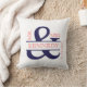 Personalized Custom Monogram keepsake wedding or anniversary pillow in Navy Blue and Coral text or typography on a white background on the front and navy blue background on the back for square throw pillows and cushions. Customize with the bride and groom family name and wedding date. This stylish and chic, modern, trendy, contemporary design will enhance any home decor, living room, sofa, lounge, bedroom, office, or boat. This pillow or cushion is a perfect gift weddings, anniversaries, bride to be, couples, engagements or for yourself or someone you love. Simple and elegant.