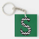 A very stylish keychain with the initial 'S' in a black and white chevron pattern. The background shown is dark green but you can choose from a wide selection of background colours by using the Edit button. You can also choose a different type or shape of Keychain or rotate the initial for a better fit - have fun with it!