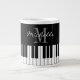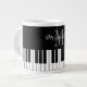 Custom monogram big large giant jumbo mug gift. Monogrammed coffee cup for piano teacher, pianist, pianoman, girl, boy, piano player, musician, music artist etc. Enormous size drinkware design for men, women and kids. Super XL oversized mugs for home or office. Also nice as Birthday party present or thank you favor. Grand Piano keys Keyboard instrument design.