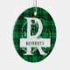 Custom Monogram Letter R Green Plaid Background Ceramic Ornament