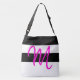 Custom Monogram M Striped Pattern Black White Pink Crossbody Bag