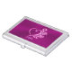 A really pretty business card case featuring an embossed-look, filigree heart and roses. It's on a contrasting, aubergine background and uses a custom monogram for you to change to your initials, just by typing into the box.