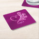 Custom monogram, Mauve Stylized Heart and Roses Square Paper Coaster