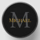 A set of mini men's candles in black and gold, personalized with a bold initial and a name. Hand-poured with eco-friendly 100% soy wax, lavender scented.