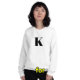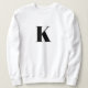 Stay stylish and cozy with our custom white sweatshirt, featuring a custom monogram name initial bold typography design. This bold typography showcases the letter "K," which you can easily personalize by replacing it with your own initial. Perfect for creating a unique piece, this sweatshirt is ideal for highlighting your name initial letter. To customize, simply click "Personalize," type in the first letter of your name, and watch your creation come to life. Embrace the elegance of personalized fashion with this sleek and versatile sweatshirt that combines comfort and style effortlessly.