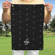 Add a touch of minimalist elegance to your golf game with this custom monogram golf towel. Featuring two initials and a first name in crisp white typography, this sleek design stands out against a bold black background. A subtle decorative slash adds modern flair, making it the perfect blend of style and function.