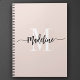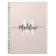 Elegant, modern gift notebook with your custom name and monogram in a trendy hand lettered script calligraphy design in minimalist blush pink and black, this typography driven design makes a great gift for coworkers, teachers, coaches, girlfriends, boyfriends, wives, daughters, or any other work or family member! Great for the office or home decor this chic note book makes a fun, stylish present for any birthday, wedding or bridal shower!