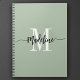 Elegant, modern gift notebook with your custom name and monogram in a trendy hand lettered script calligraphy design in minimalist sage green and black, this typography driven design makes a great gift for coworkers, teachers, coaches, girlfriends, boyfriends, wives, daughters, or any other work or family member! Great for the office or home decor this chic note book makes a fun, stylish present for any birthday, wedding or bridal shower!