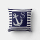 Custom Monogram Nautical Anchor Navy Blue stripes Throw Pillow