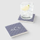 Custom Monogram Navy Blue and Silver Geometric Stone Coaster
