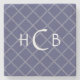 This customizable geometric stone coaster features my digital art of non-metallic silver / grey diamonds on a navy blue background. The first and last initial are in white, as is the middle initial. These can be personalized (on the right of this page) to your chosen monogram. This would make a great gift.