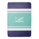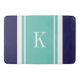 Custom Monogram Navy Teal Mint Stripes Pattern Bathroom Mat