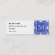 Custom Monogram, on Blue and White Damask Pattern. Mini Business Card