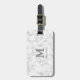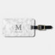 This luggage tag has a white marble texture and a gray monogram. Under the initial, you can personalize the tag with your first or last name.
