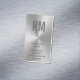 A large customizable monogram in dark gray text is at the top of this silver metallic look business card. Under your initials, you can personalize your business cards with your name, title, company, phone number, e-mail address and web address. Metallic look is an artistic rendering only.