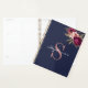 Custom Monogram Pink Burgundy Gold Floral Planner on blue background. Easy to personalize. Get yours today!