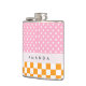 Custom Monogram Pink Orange Polka Dot Check Flask
