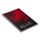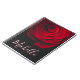 Macro photo of a beautiful red rose on black background with vintage grainy effect with custom personalizable monogram.