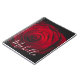 Macro photo of a beautiful red rose on black background with vintage grainy effect with custom personalizable monogram.