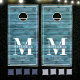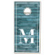 This Modern, Rustic Elegant corn hole set features your family monogram and name over a printed green blue driftwood wood planks backdrop in a Retro Cool Typography Design. Customize with your family name and initial and make this your own unique summer game set for the farmhouse style lake house, family cottage, or cabin. Also works great for a beach wedding reception party.