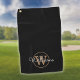 Custom Monogram Script Name Black And Gold Golf Towel