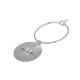 Custom monogram silver glitter round wine glass charms. Elegant script typography with monogrammed initial letter. Classy personalized design for fancy wedding party, luxurious bridal shower, engagement, anniversary, birthday etc. Add your own name or family surname. Sparkly faux silvery background texture. Glittery glimmers and sparkling sparkles. Glamorous party accessories and supplies.